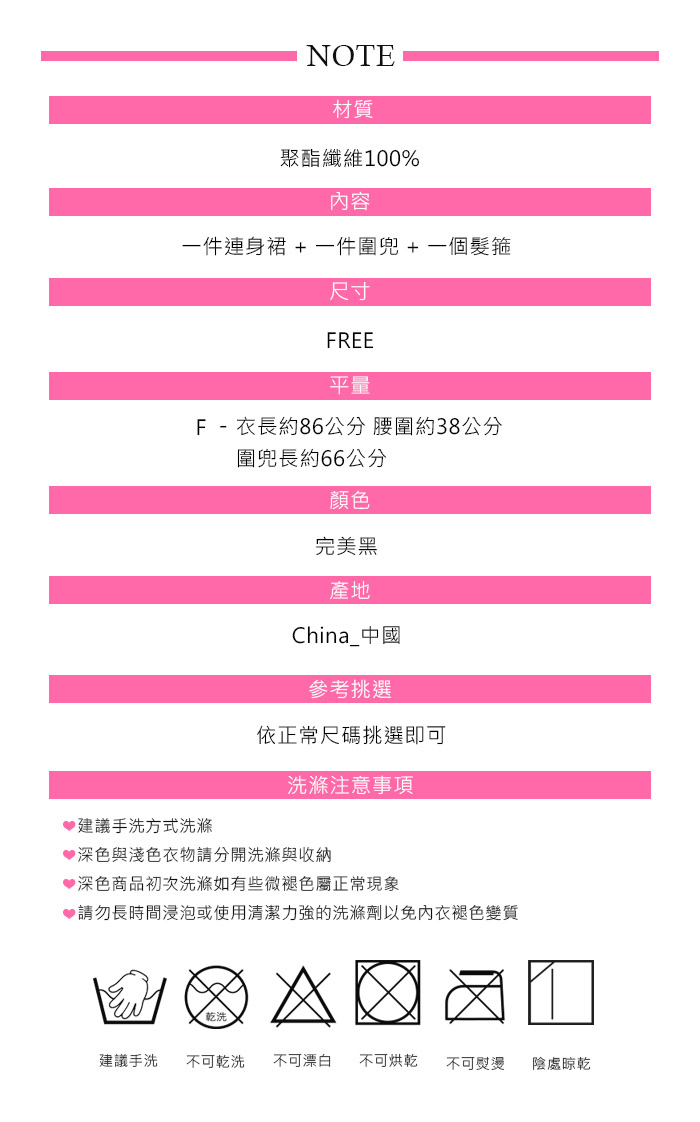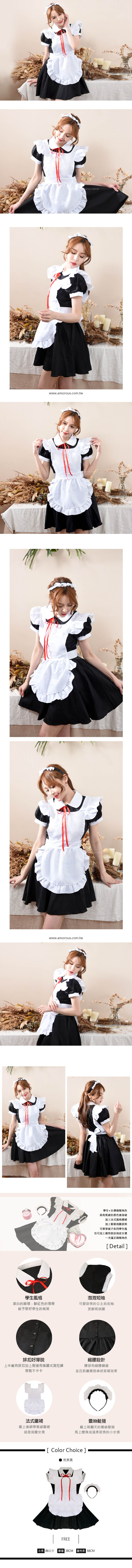 ☑學生+女僕兩種角色 ☑具有質感的黑色連身裙 ☑加上法式風格圍裙 ☑加上髮箍俏麗甜美 ☑可單穿裙子如同學生風,也可加上圍兜裝扮俏皮管家 ☑一次滿足兩種角色