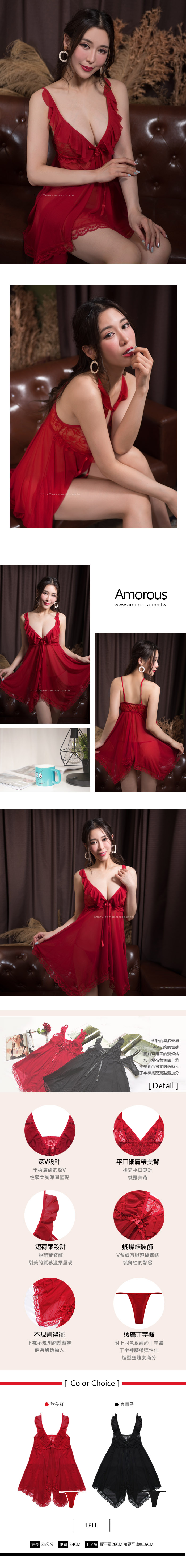 【315 - 甜美紅】透膚性感.飄逸裙擺.兩色