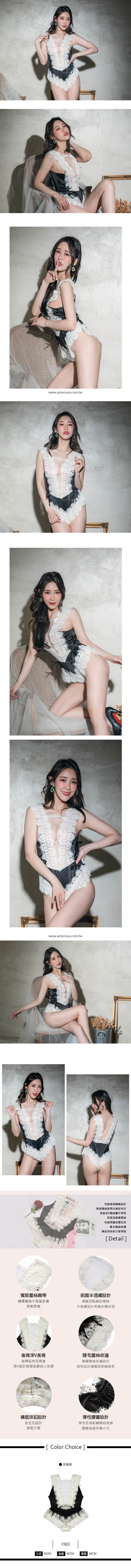 ☑前面為透膚點點網紗,性感美胸若隱若現