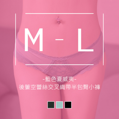 下著小褲 歐美【丁字/半包臀】小褲 「藍色夏威夷」後簍空蕾絲交叉織帶半包臀小褲