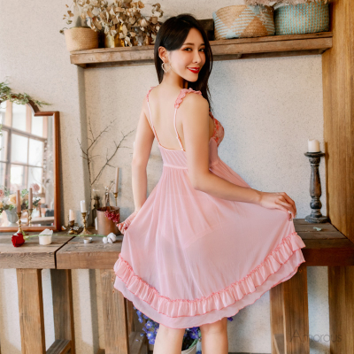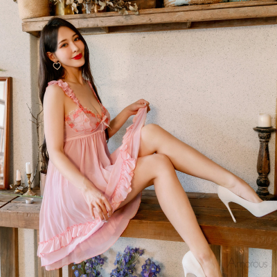 ☑質感細緻的柔紗面料透視曼妙的好身材 ☑胸前點綴精緻的雙色刺繡 ☑鬆緊式荷葉邊可調式肩帶 ☑層次荷葉滾邊裙襬展現溫柔又優雅