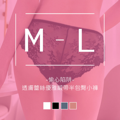 下著小褲 歐美【丁字/半包臀】小褲 「偷心陷阱」透膚蕾絲優雅緞帶半包臀小褲