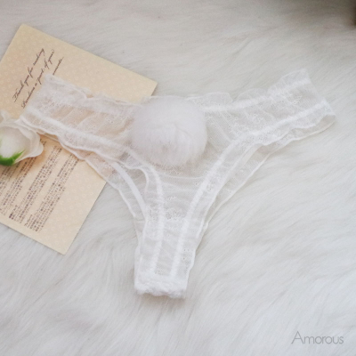 「兔兔派對」俏皮兔毛球蕾絲丁字褲