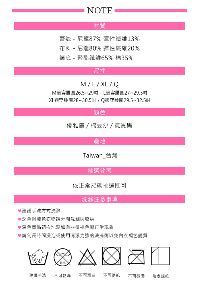 ☑中高腰設計,腰部寬版蕾絲設計,優雅親膚