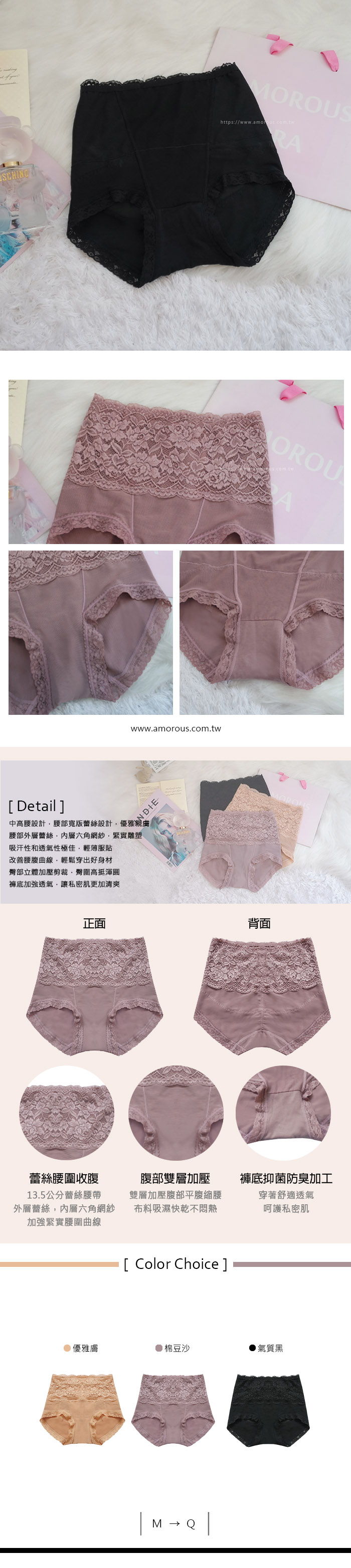 ☑腰部外層蕾絲,內層六角網紗,緊實雕塑