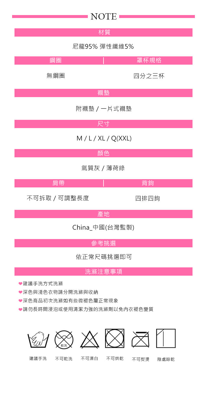 ☑內衣表布彈力透氣,親膚性佳,延展性好