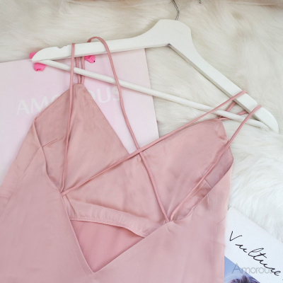 「雪色戀人」緞面細肩帶美背睡裙