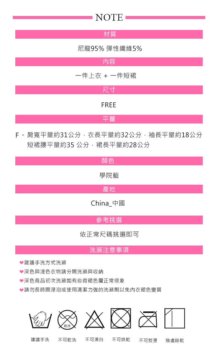 商品簡介 : ❤ 品牌 : Amorous私密內衣 ❤ 商品內容物 : 上衣 x1 + 短裙 x1 ❤ 顏色 : 學院藍 ❤ 尺寸 : FREE ❤ 肩帶 : 無肩帶 ❤ 襯墊 : 無襯墊 ❤ 產地 : China_中國 ❤ 挑選參考 : 依正常尺碼挑選即可 .