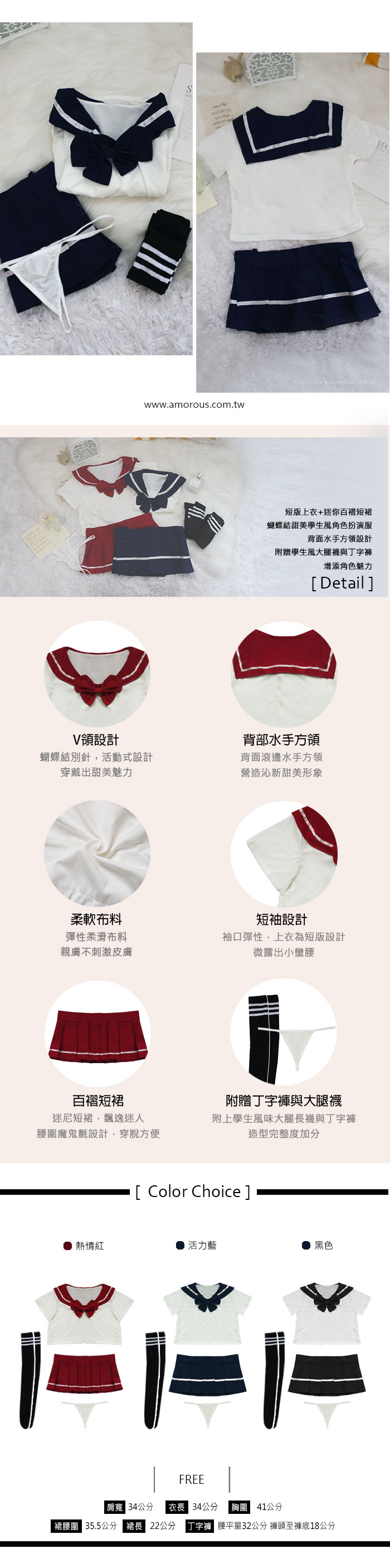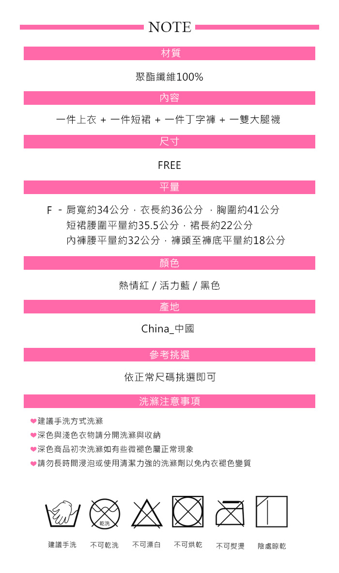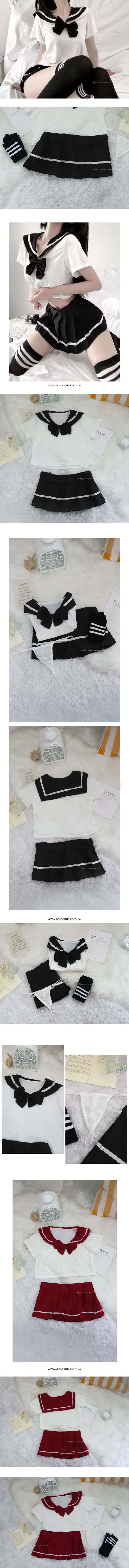 ❤ 商品內容物 : 上衣 x1 + 短裙 x1 + 丁字褲 x1 + 大腿襪 x1