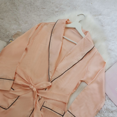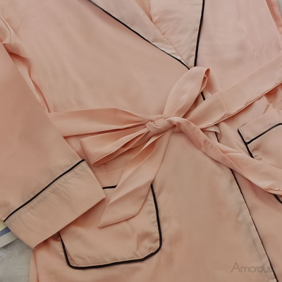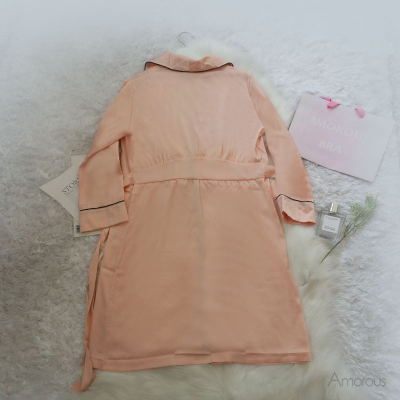 【23008 - 粉膚】質感緞面.中長版睡袍