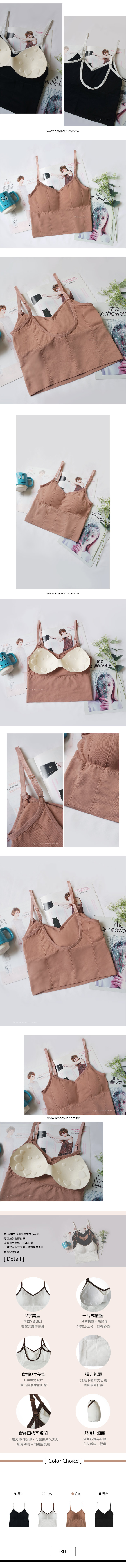 ☑前V後U美型細肩帶美型小可愛 短版設計收腰包覆 ☑布料彈力透氣,不起毛球 ☑一片式可拆式內襯,胸部包覆集中 ☑背後U領美背