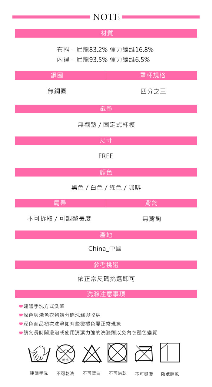 ❤ 襯墊 : 無襯墊 / 固定式杯模