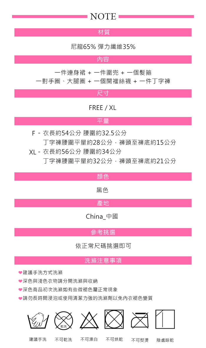 ☑附贈開襠絲襪與丁字褲,甜美蕾絲手圈與大腿圈,造型加分