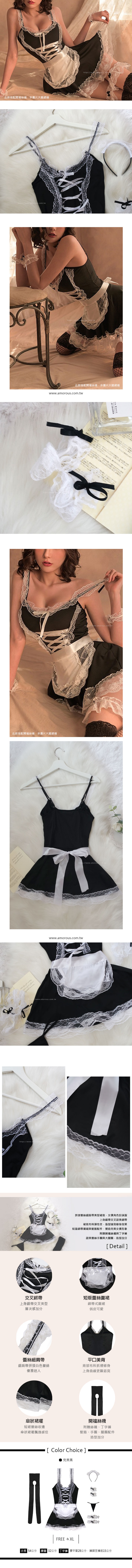 ☑拼接蕾絲細肩帶美型裙裝,女僕角色扮演服