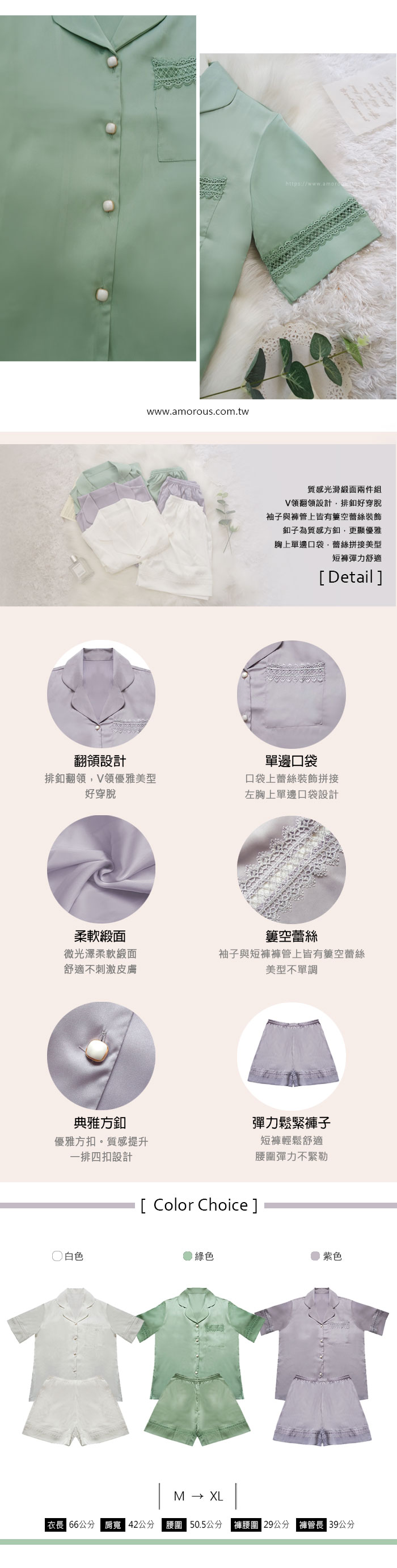 ☑袖子與褲管上皆有簍空蕾絲裝飾