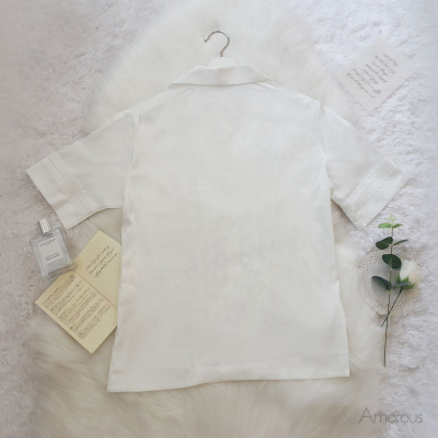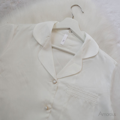☑質感光滑緞面兩件組 ☑V領翻領設計,排釦好穿脫 ☑袖子與褲管上皆有簍空蕾絲裝飾 ☑釦子為質感方釦,更顯優雅 ☑胸上單邊口袋,蕾絲拼接美型 ☑短褲彈力舒適