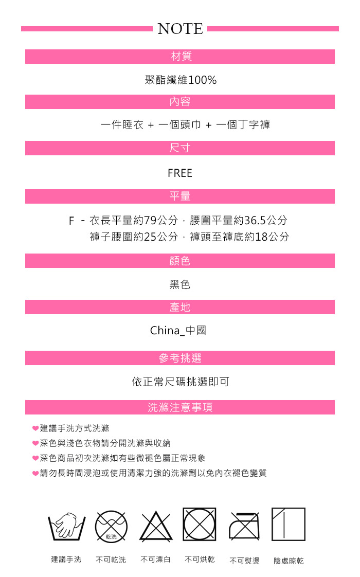 ❤ 商品內容物 : 睡衣 x1 + 頭巾 x1 + 丁字褲 x1