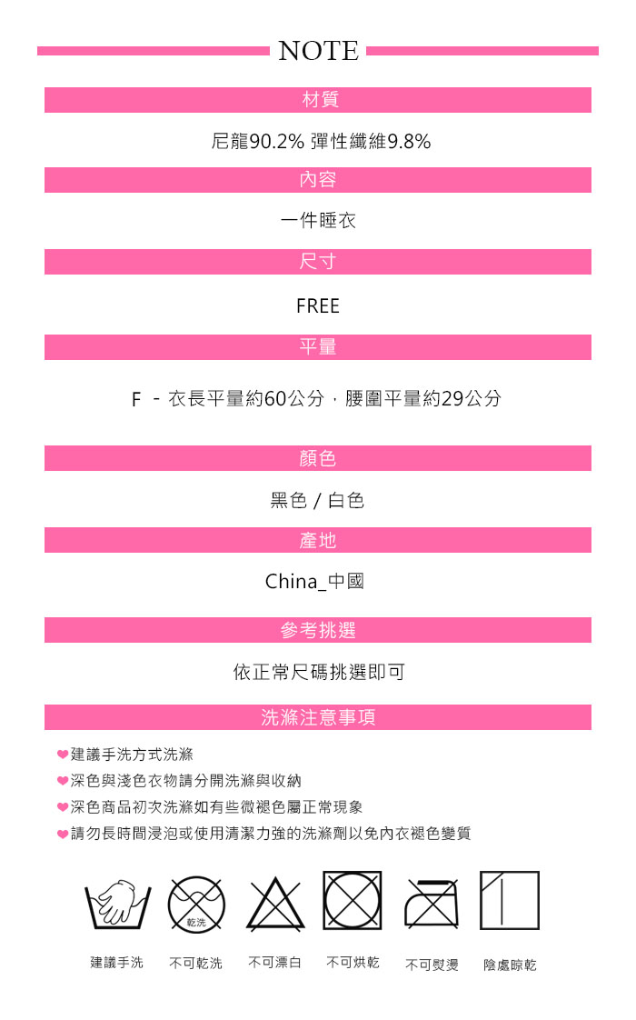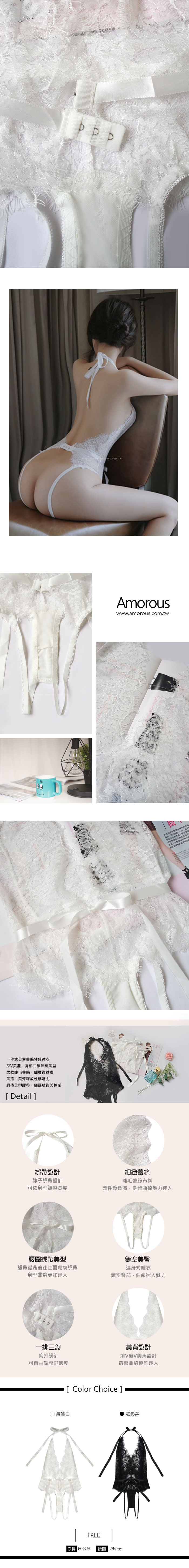 商品簡介 : ❤ 品牌 : Amorous私密內衣 ❤ 商品內容物 : 睡衣 x1 ❤ 顏色 : 黑色 / 白色 ❤ 尺寸 : FREE ❤ 肩帶 : 綁帶設計 ❤ 襯墊 : 無襯墊 ❤ 產地 : China_中國 ❤ 挑選參考 : 依正常尺碼挑選即可 .