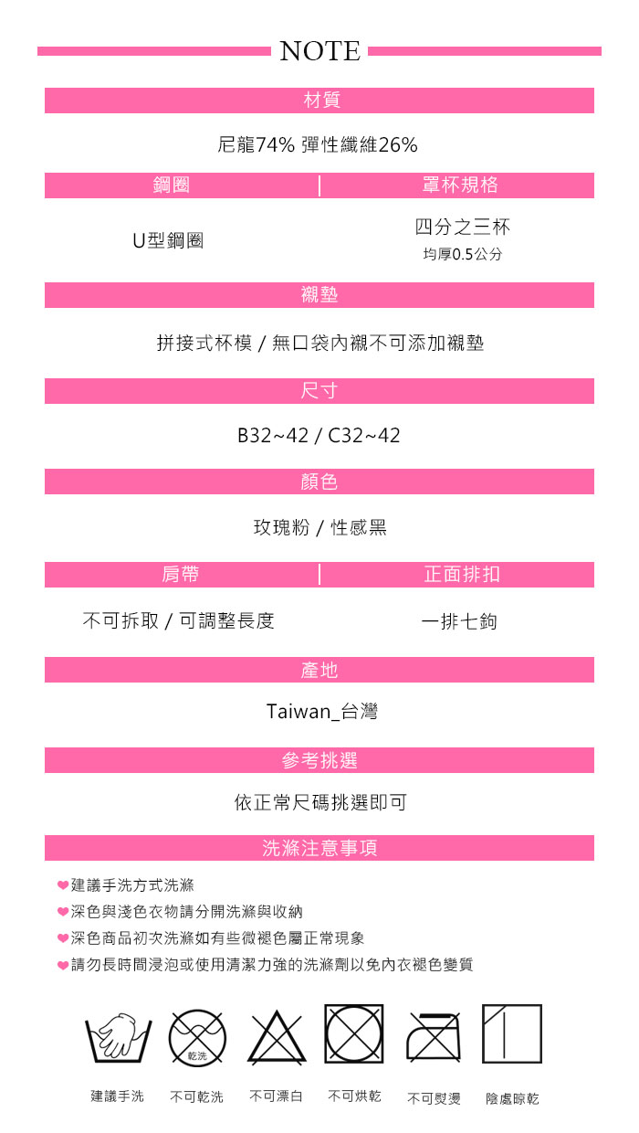 ❤ 顏色 : 性感黑 / 柔美膚 / 玫瑰粉 / 黛安紫 / 迷蝶紅